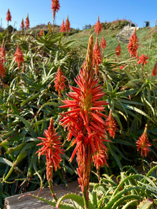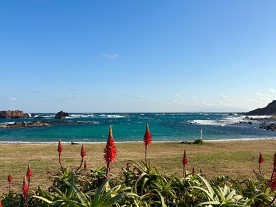 本日(12月23日)は風が強かったものの、青い海がとても美しく、園内各所でアロエの花も楽しめました🌊🌼🌵